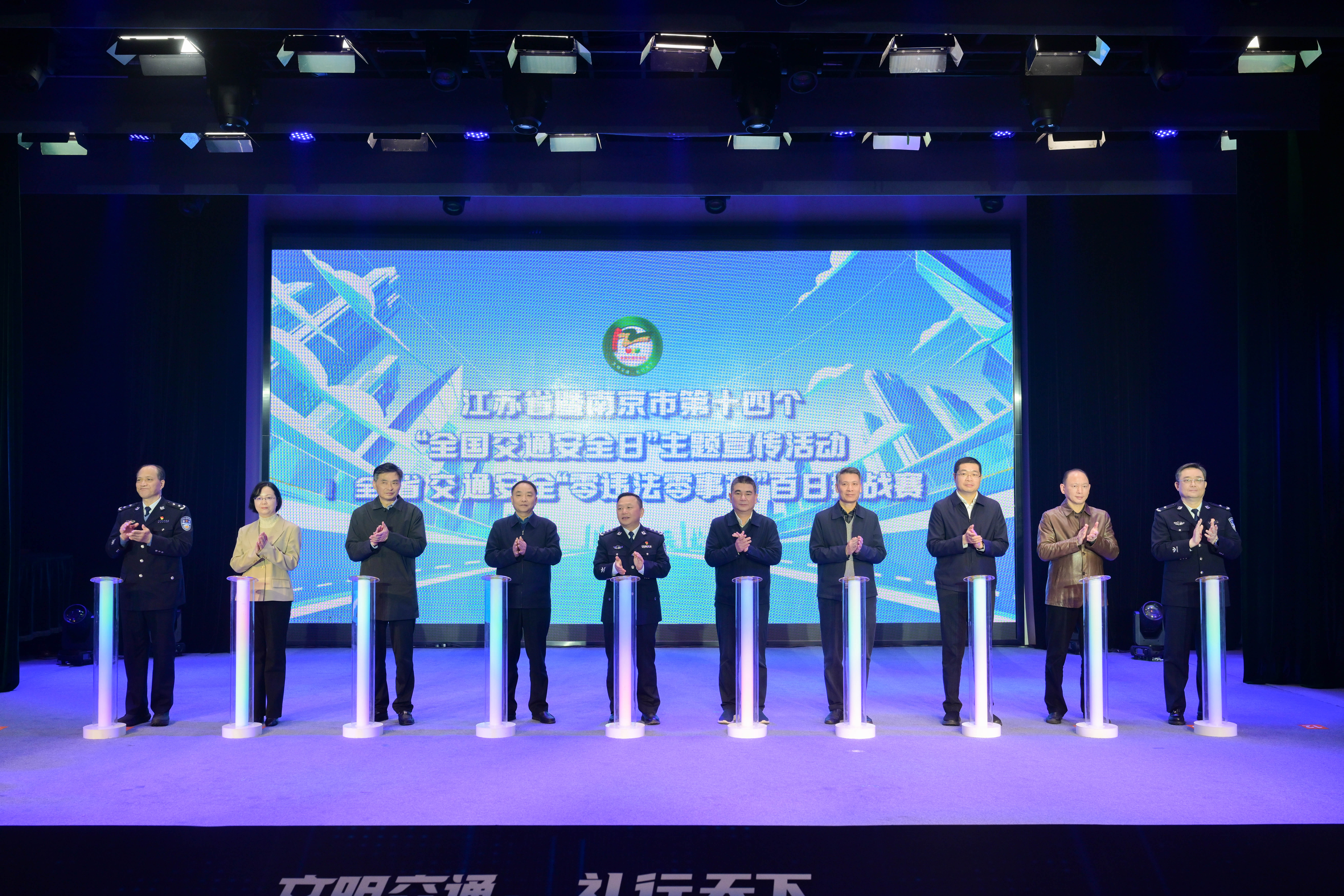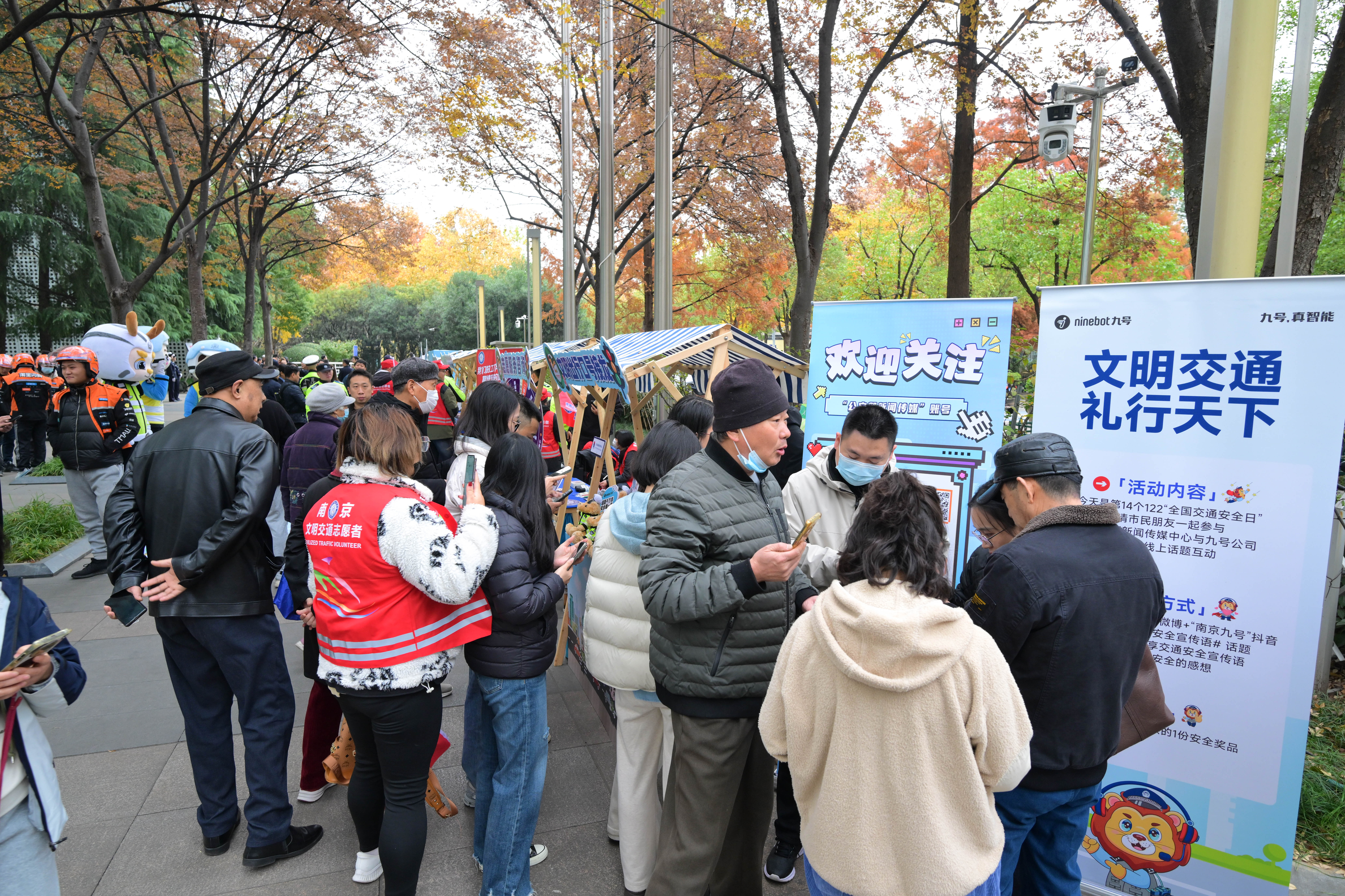 当天上午,省、市有关部门在南京图书馆共同举办江苏省暨南京市“全国交通安全日”主题宣传活动启动仪式。活动通过“以礼待人”“以礼修身”“以礼润心”三个篇章展开,市民群众和本地高校学者现场分享对礼行文化思想和文明交通理念的认识,省公安厅、省人力资源社会保障厅、省交通运输厅、省市场监督管理局、省邮政管理局、省总工会现场携手快递、外卖、网约车等行业企业成立“江苏省新就业形态人员文明交通公益联盟”,省公安厅等8部门共同发布“礼序通达 让显光华”文明交通主题公益广告,宣布开展全省交通安全“零违法零事故”百日挑战赛活动。在户外广场还搭建了“交通安全大集市”,现场组织市民参与互动有奖问答,开展交通安全宣讲。