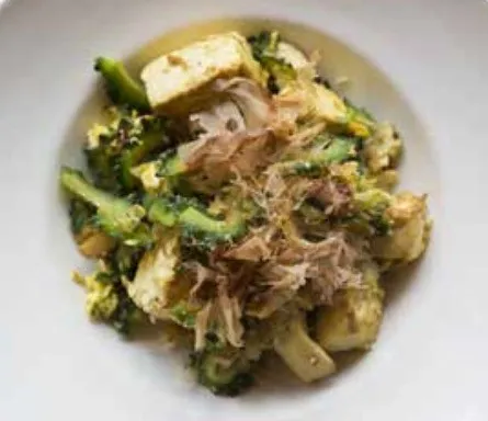 在日本最有名的“冲绳料理”就是冲绳杂炒,由蔬菜和豆腐等材料炒制而成,比如苦瓜杂炒。这道菜很容易让人联想到中餐的家常菜——炒苦瓜。这道菜具有清凉解毒的功效,在夏天很受欢迎,因此,到了琉球便成了当地特色菜,流传至今。而且与中国的方法相似,“苦瓜杂炒”在炒的时候也要加上鸡蛋。当地人还按自己饮食习惯,在苦瓜炒鸡蛋里加入豆腐和猪肉一起拌炒。