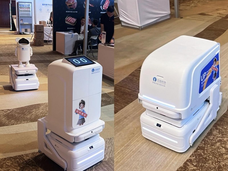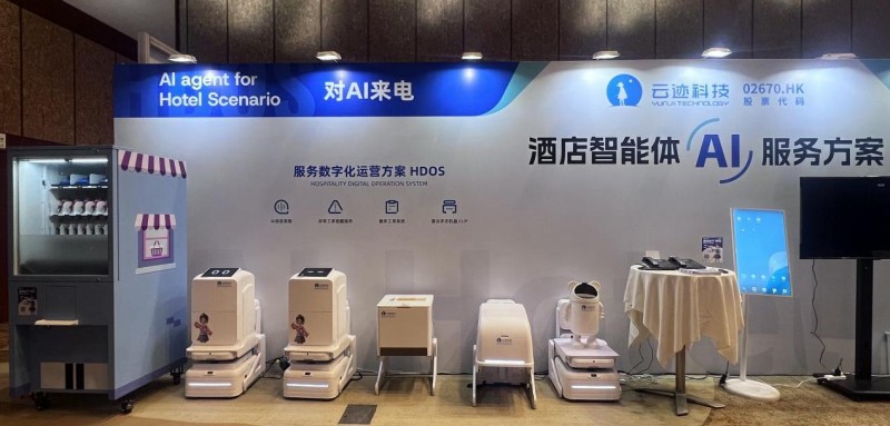 展会现场,云迹科技酒店智能体家族集体现身,包括AI智能语音、UP送物机器人+清扫机器人+收垃圾机器人+开放仓机器人、煮面机器人、炒菜机器人、智能货柜,共同构建了一个集“客服、服务、清洁、餐饮、零售”于一体的酒店数智化服务场景。