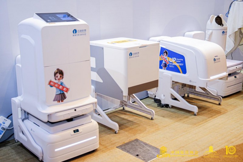 与此同时,穿梭在人群中的复合多态机器人UP也吸引了众多与会嘉宾的目光。它时而化身“送物员”为现场嘉宾送物送水,时而切换为“清洁工”默默清扫展区地面。而超萌的收垃圾机器人在现场巡游收垃圾,开放仓机器人负责送大件/批量送物。