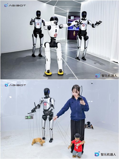 谁能想到?传承百年的老手艺,也被智元机器人玩出花了!在木偶戏表演中,智元远征A2凭借灵活的指法,扯着提线让木偶小狗活灵活现,和真人演员配合更是天衣无缝,引得观众纷纷举起相机,记录下这精妙的人机协作瞬间。期间,智元远征A2与灵犀X2联手奉献了一场精彩的群舞表演,将现场气氛推向顶点。