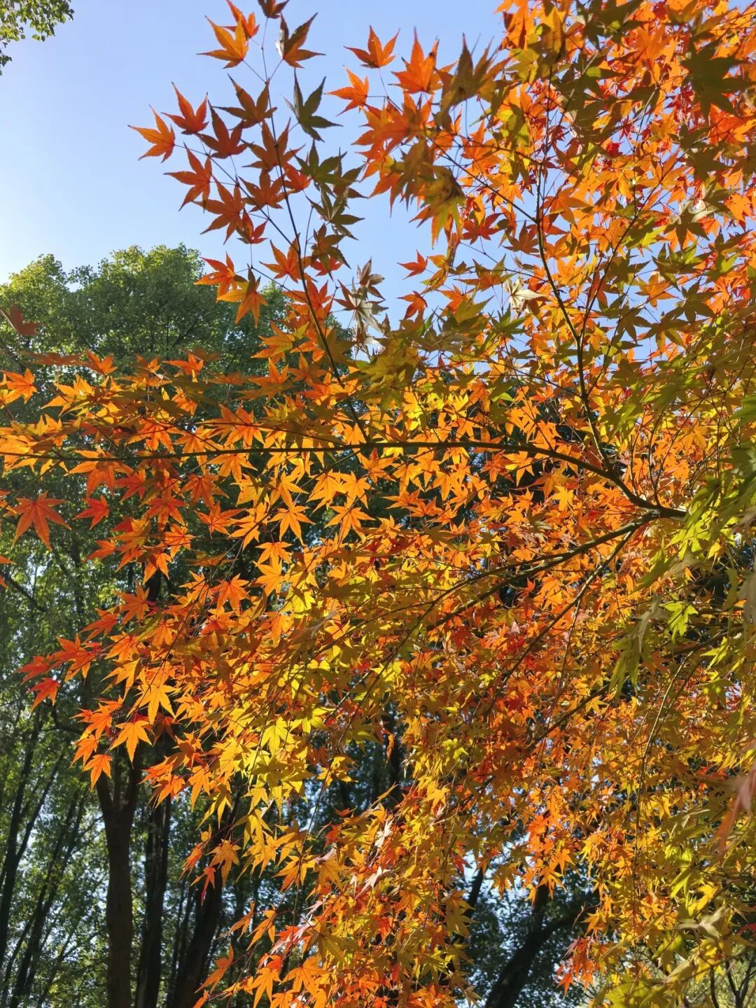 阳光永远是最好的滤镜,在光的照射下,枫叶通透鲜亮,边缘勾勒着金边,叶片纹理都清晰可见,随手一拍都是绝佳美景。