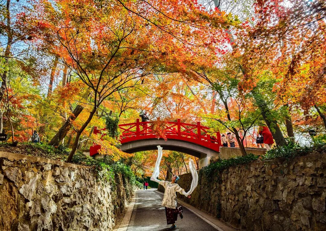 这条路更不必多说啦~就连路边的石阶、转角的木栈道,都被红叶装点得格外浪漫,走累了便坐下歇歇,听着耳边的欢声笑语,这份惬意与自在,正是逃离城市喧嚣的意义。