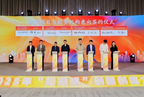 颁奖典礼现场,本届获奖项目与园区载体、松山湖产业基金签署入驻及落地合作协议。基金将通过“母基金+子基金+直投”模式,为项目提供最高175万元综合扶持,包括直投基金及政策、空间等配套资源。