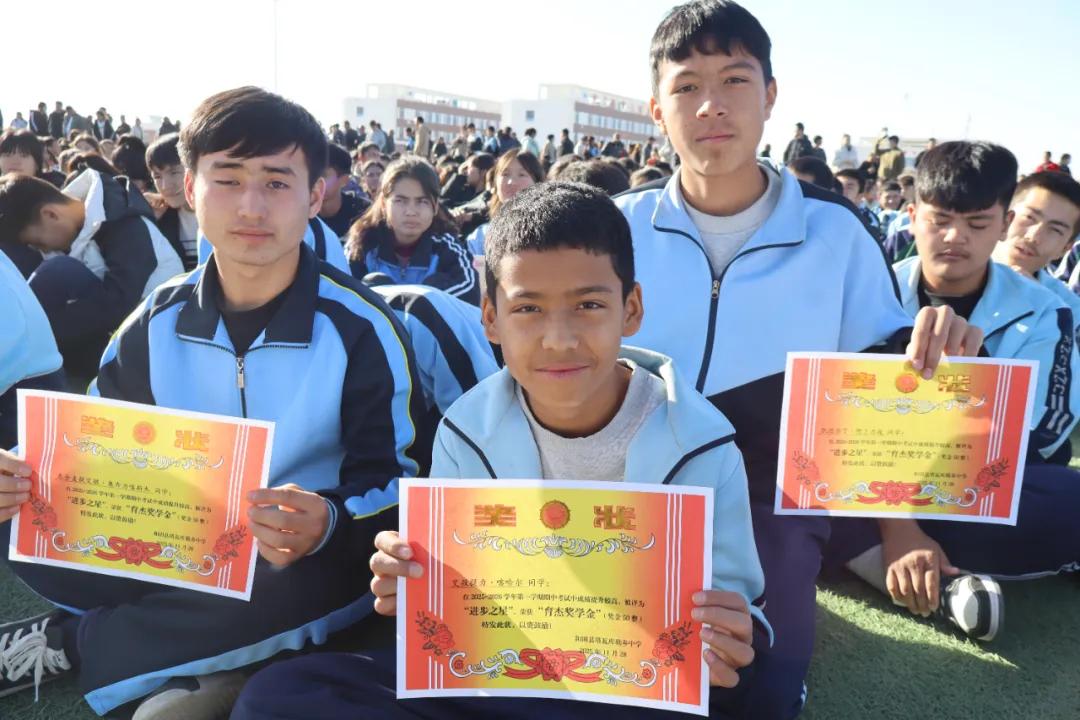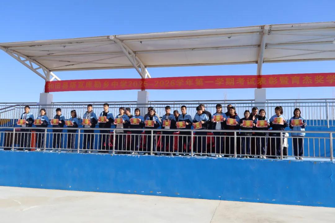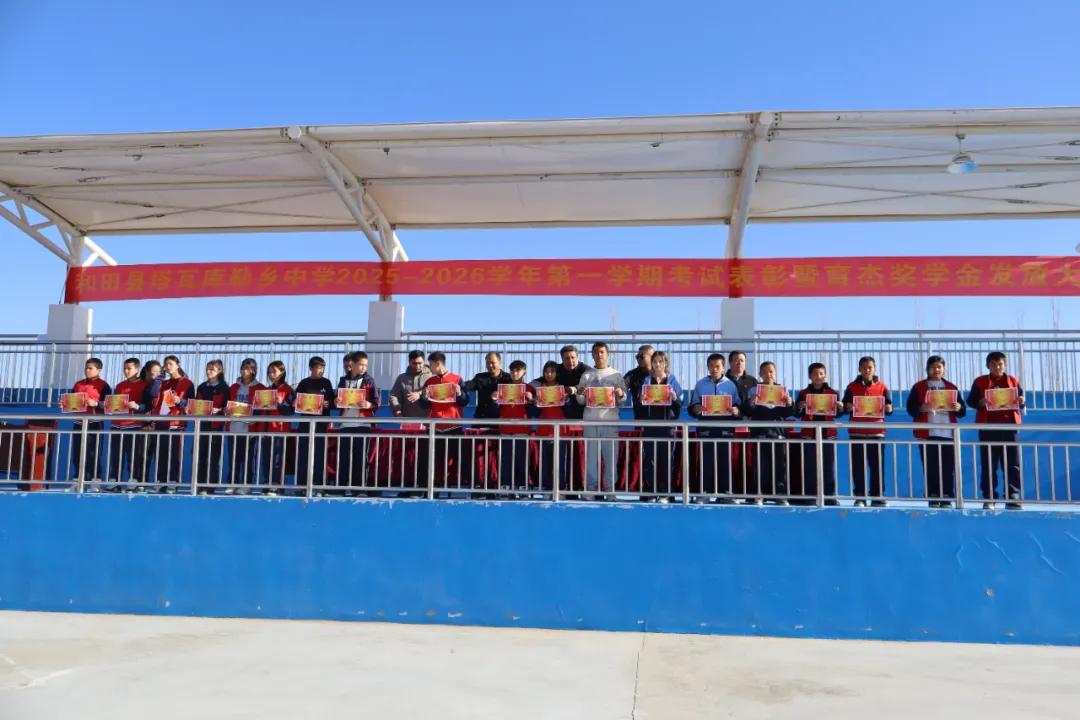 2025年11月27日上午,和田县塔瓦库勒乡中学操场上阳光明媚,彩旗飘扬。伴随着雄壮的国歌声,2025-2026学年上学期期中“育杰奖学金”发放仪式在此隆重举行。全校师生齐聚操场,共同见证这一激励成长、表彰先进的重要时刻。