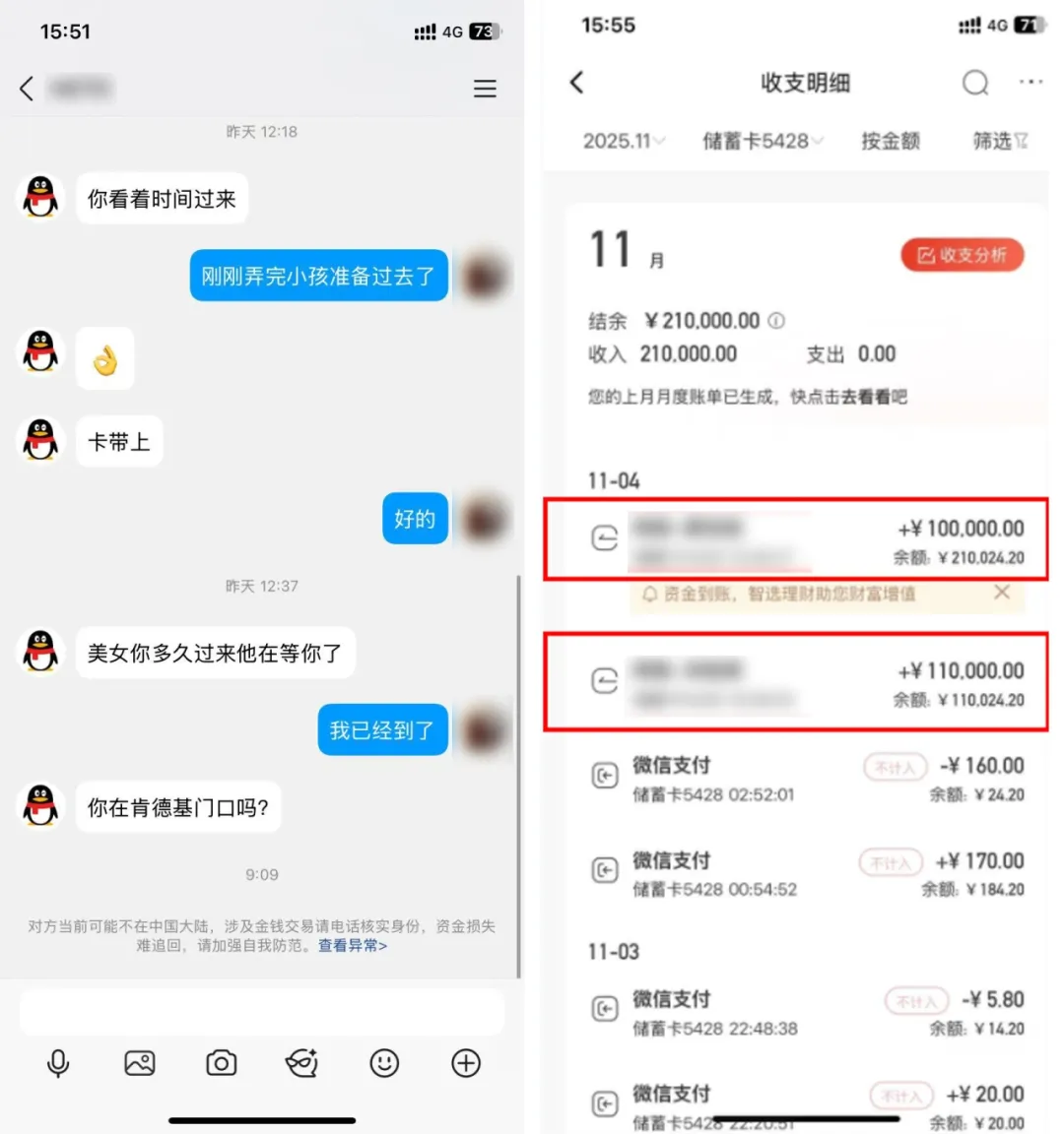 “客服”以流水不足为由,竟然安排了“工作人员”与黄女士线下见面。对方拿起黄女士手机一通操作,黄女士卡内果然收到两笔转账,共计21万元。