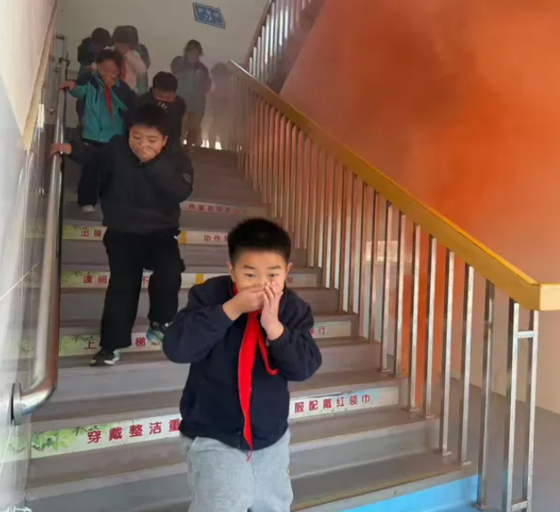 演练指令一经发出,警报声响彻校园。全体师生立即进入应急状态,严格依照学校制定的安全疏散预案,迅速有序地展开行动。各班教师沉着组织,引导学生用防护物品掩住口鼻,采取低姿快速前进的方式,按照预定疏散路线,安全、高效地向指定集合区域转移。整个过程紧张而有序,同学们纪律严明、行动整齐,展现出良好的心理素质和集体协作能力。