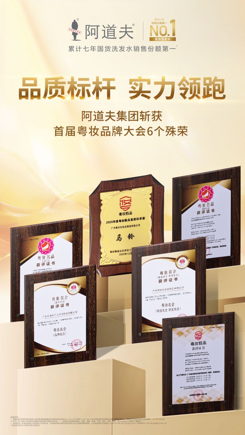 每一份荣誉都是新的起点。展望未来,阿道夫集团将继续以技术创新为驱动、以品牌价值为引领,持续夯实全产业链优势,为消费者创造更多美好的洗护体验,助力粤妆产业迈向更高质量的发展道路,奋力擦亮中国洗护品牌的名片,让世界更爱中国洗护。
