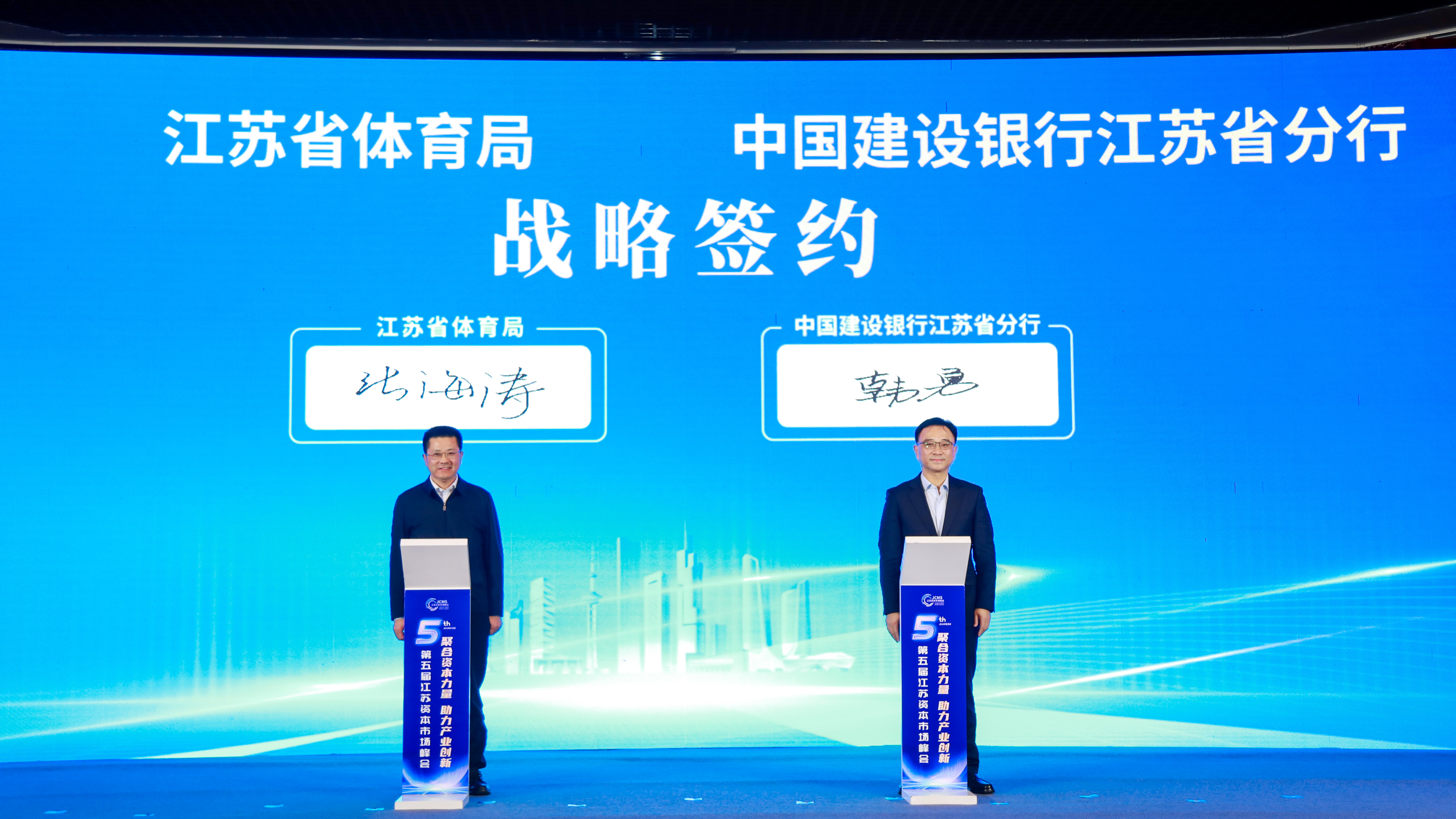 本次活动结合第五届江苏资本市场峰会举办,省体育局与建设银行江苏省分行签署了新一轮战略合作协议,解读了体育产业金融支持政策;南京、无锡、常州三个入选第一批高质量户外运动目的地建设地区,作了特色项目推介。借助此次峰会举办,探索搭建了促进金融资本与体育产业对接和服务企业的新平台。