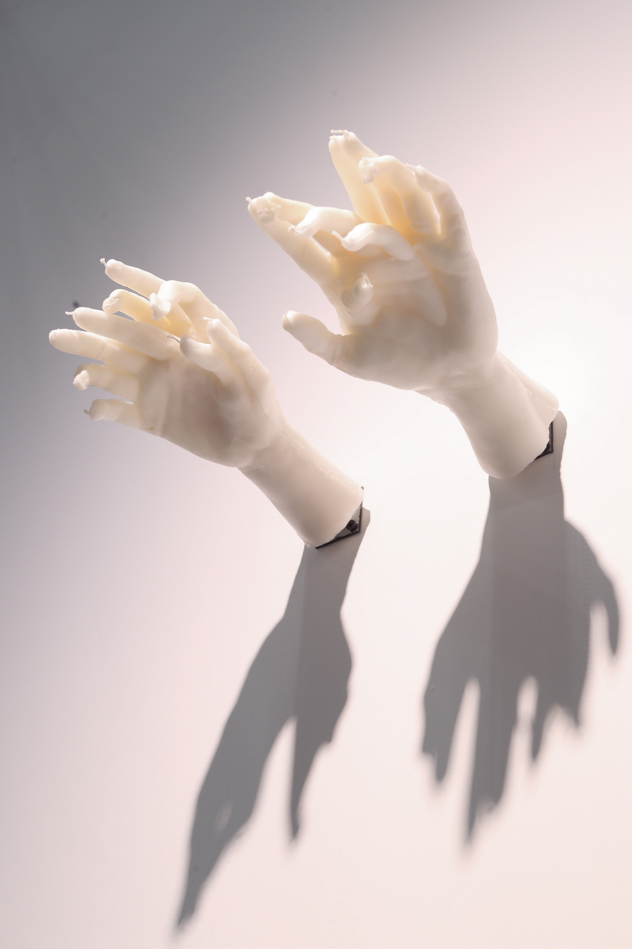 宋紫薇,《壳中之灵》(Spirit in Shell),蜂蜡、海盐、棉线,25.9×12.9×10.1 cm *2,影像,1h 4'44",2025