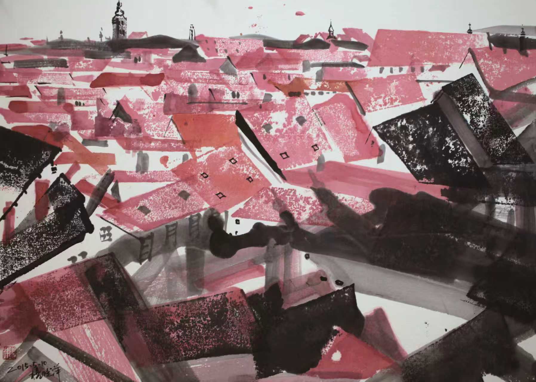 杨晓洋,《纽伦堡印象》(The Impressions of Nuremberg),纸本水墨,35×45 cm,2024