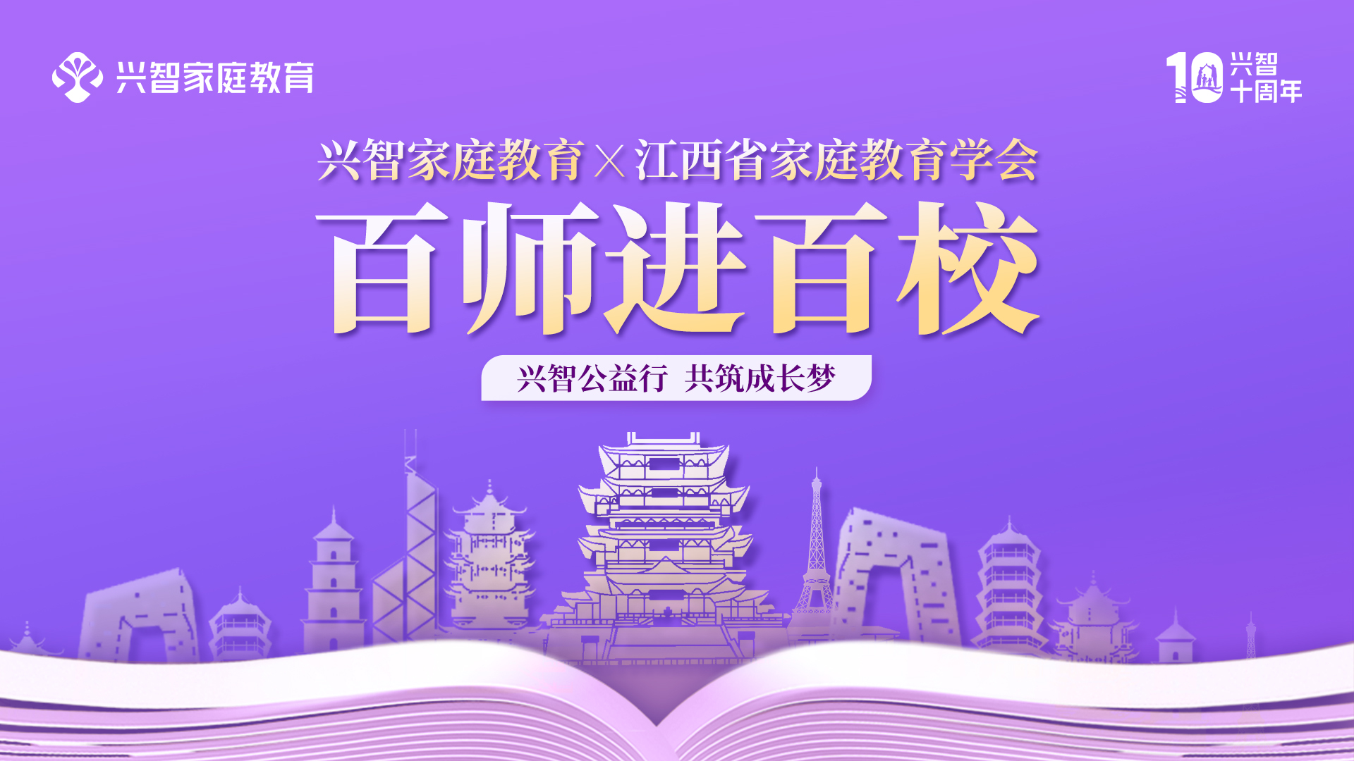 家庭教育不仅是关起门来的家事,更是需要全社会协同支持的公共事业。2025年,在成立十周年之际,兴智家庭教育联合江西省家庭教育学会,正式发起了一项深具社会责任的公益项目——“百师进百校”。