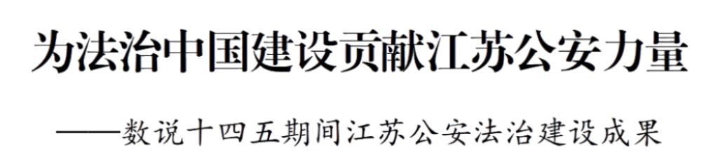 5年来,江苏公安机关坚持以习近平法治思想为指导,瞄准“法治公安建设现代化”目标,全力推进法治引领、支撑、赋能、服务、规范公安实战,全面构建执法制度、执法监督、执法责任、执法培训、执法保障“五大体系”,以“走在前、做示范”和“当标杆标兵”的使命担当,精确精细精准推进更高水平法治公安建设,抓好执法办案管理中心“硬支撑”,坚持执法规范化“硬道理”,严守执法安全“硬要求”,在法治轨道上推进防风险、保安全、护稳定、促发展各项工作,为法治中国建设贡献江苏公安力量。