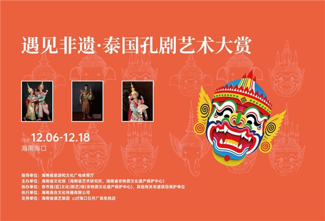 “遇见非遗·泰国孔剧艺术大赏”是本届非遗周的重点活动之一,将于12月6日至18日在海南省文化馆(海南省非遗中心)一楼特展厅潮玩登场。
