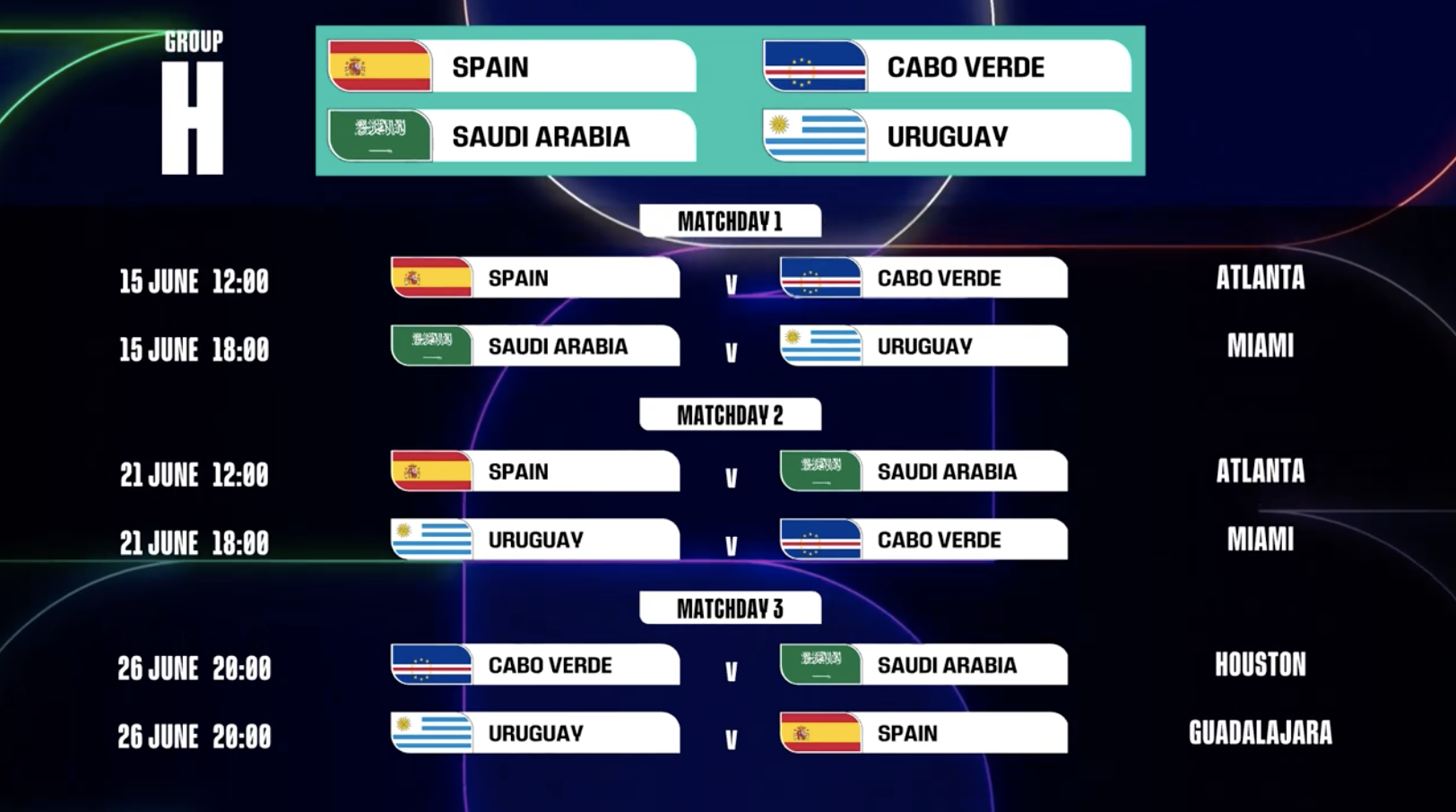 第1轮 西班牙vs佛得角:6月15日,12:00,亚特兰大