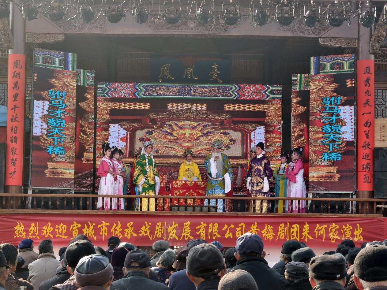 12月5日下午,高淳区固城街道花山村何家凤凰台锣鼓声声,丝竹悠扬,一场为期三天的传统大型古装黄梅戏展演在此正式启幕。本次活动以“茉莉花开 与淳同行”为主题,为当地村民和广大戏迷带来了一场原汁原味的文化盛宴。