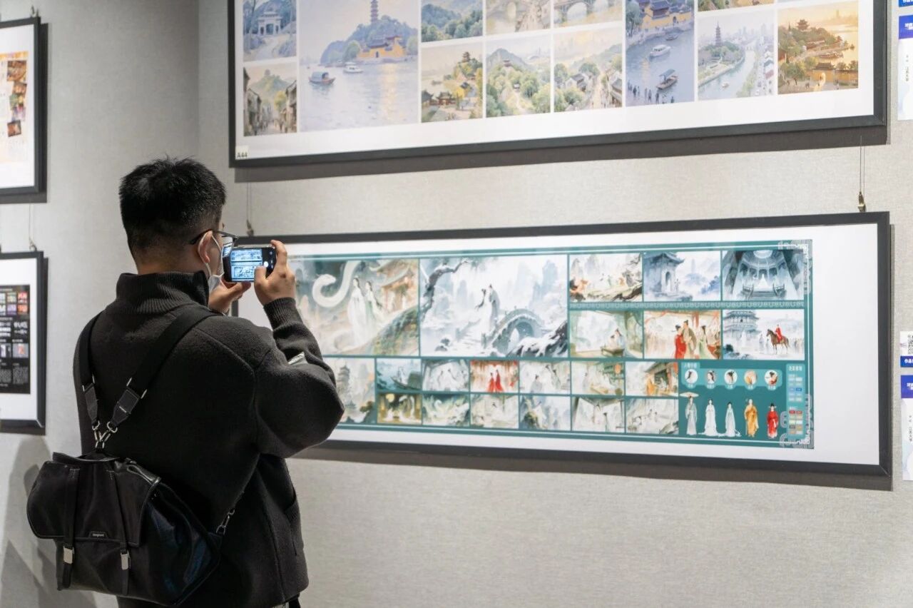 记者梳理发现,传统文化是本次大赛的核心创作焦点,作品深度挖掘中华优秀传统文化与江苏地域文化资源,借助AI技术实现非遗传承与创新。绘画类有《水墨红楼》《钟毓江山·苏韵长卷》等作品,以AI重构水墨意境与传统长卷形制;设计类聚焦昆曲、苏绣、惠山泥人等非遗,《绣韵江南》《塔影戏梦·锡剧盲盒》等文创IP惊艳亮相;影像与音乐类则通过数字重现、AI编曲,让汉韵、吴风以沉浸式体验回归大众,如《吴韵华章主题协奏曲》《智绣精微——AI绘就吴韵新章》,实现了传统文化与现代科技的无缝衔接。