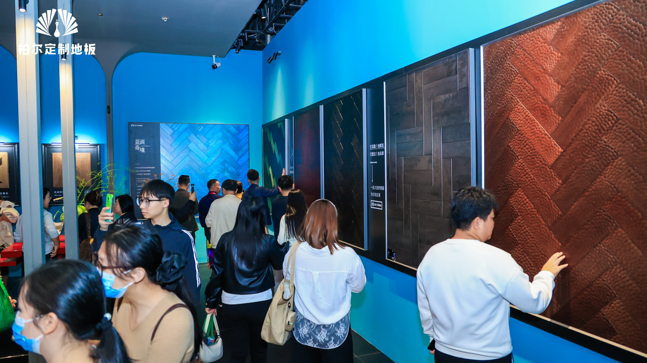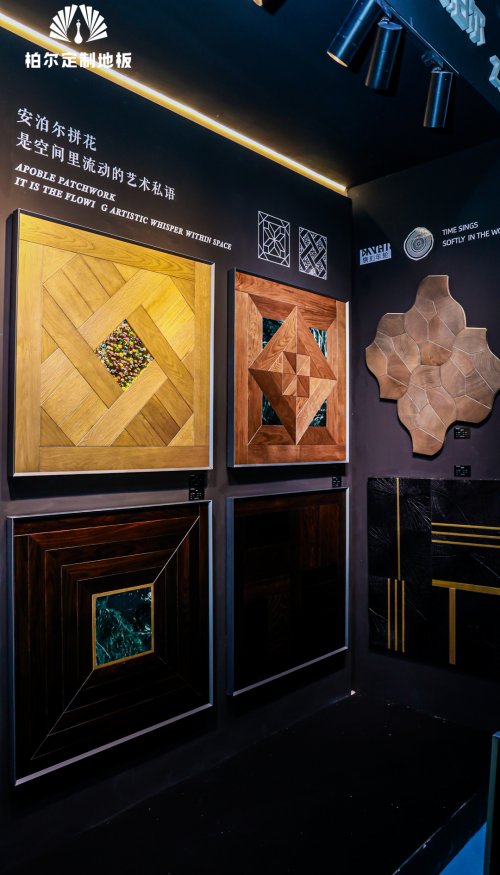与之形成精准协同的安泊尔潮流展位,则以先锋美学为核心,通过多元设计语言与灵动色彩表达,精准契合当代年轻群体的高端审美需求。现场陈列的多款创意作品,将自然灵感与人文元素融入地板设计,成为年轻设计师捕捉潮流灵感、汲取创作养分的重要阵地。两大展位虽定位迥异、各有侧重,却形成了“技术筑基+设计赋能”的互补格局,从不同维度展现柏尔高端定制的综合实力,吸引了行业精英、设计师、高端业主等多元群体的高度关注。