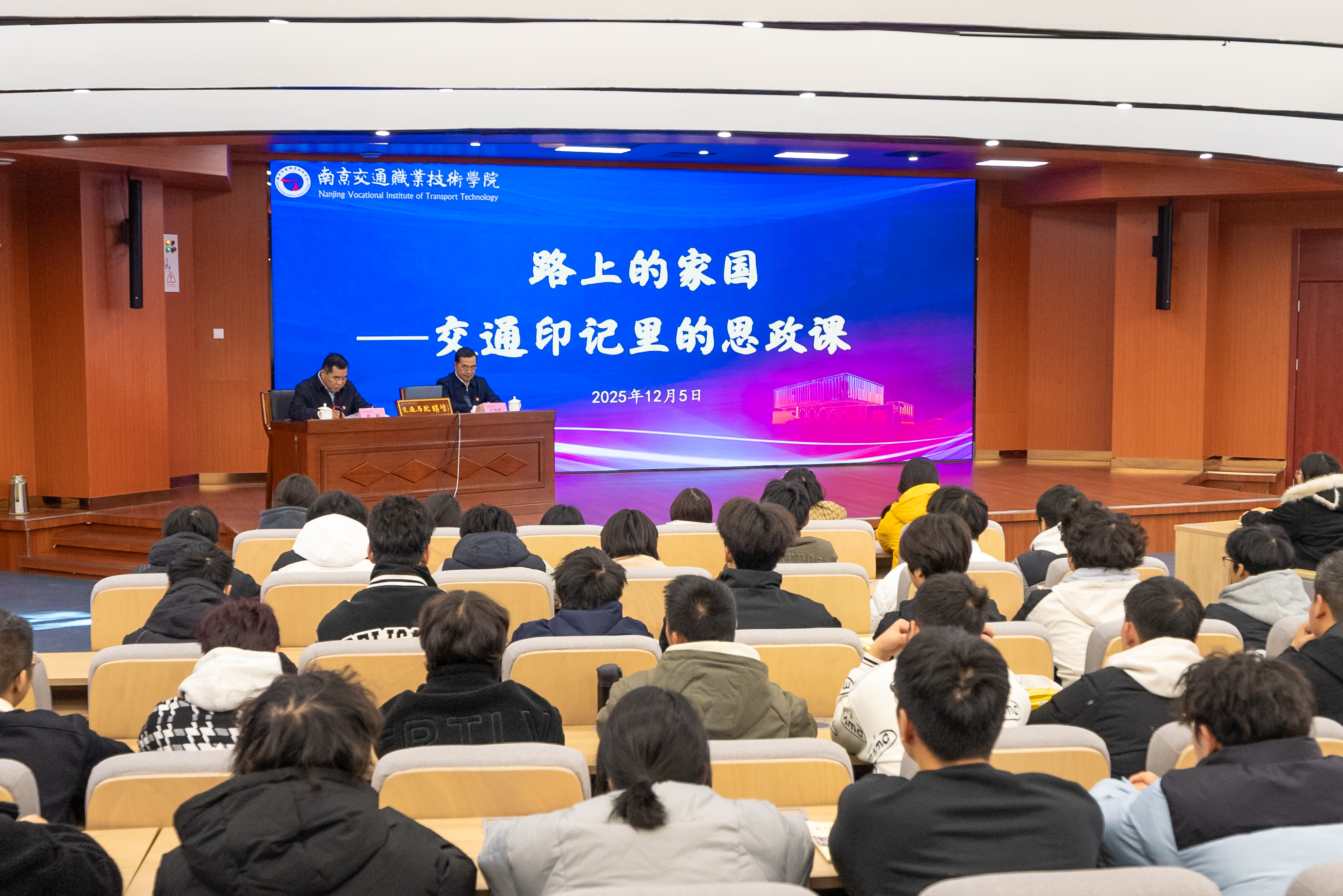 为推动思政教育与交通行业发展深度融合,引导青年学子从江苏交通实践中锚定方向、汲取力量,12月5日,南京交通职业技术学院在明德楼学术报告厅举办了“路上的家国——交通印记里的思政课”活动,这也是学校交通马院讲坛第八讲。本次活动特邀江苏省交通运输厅副厅长、党组成员、厅机关党委书记王慧廷主讲,学院党委书记张毅主持活动,广大交院学子踊跃参与了这场兼具理论高度与实践温度的交通思政盛宴。