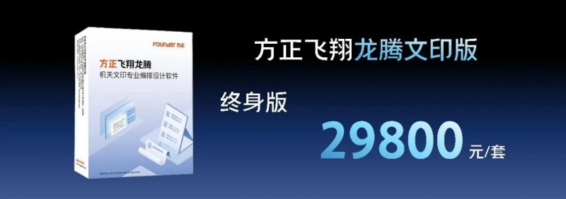 即日起至2025年12月31日,凭已购买的终身版方正排版软件均可以9800元/套的价格,换购最新发布的方正飞翔龙腾文印版。