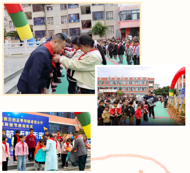 北京助航者空天科普发展中心协调组织中国航空学会航空科普专家和爱心企业家一行,赴云南省昆明市䘵劝彝族苗族自治县的三所全国航空特色学校——䘵劝红军小学、䘵劝民族小学和翠华镇希望小学,开展了科普进校园和爱心捐赠系列活动。广州乐同工业科技有限公司有幸作为其中一家爱心企业,共同参与了本次助学专项活动。