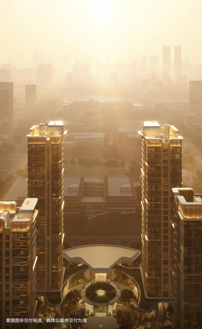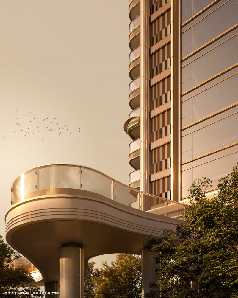 主入口以“城市雕塑”为理念,打造连续约230米界面,约60米宽度主门与约12米悬挑,以恢宏气势致敬城市,让归家成为审美体验,让建筑成为城市记忆。