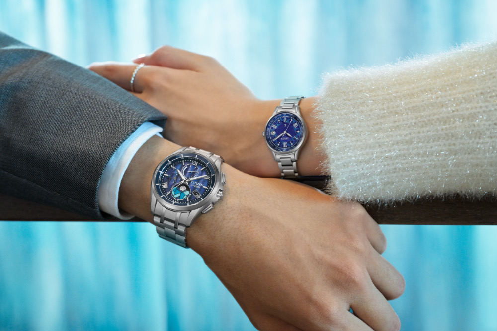 彩绘玻璃花窗的精妙之处在于其本质是“透光的墙”,兼具透光与墙体支撑功能。光线透过大幅花窗,改变了罗曼式建筑因采光不足而沉闷压抑的氛围,其丰富的色彩和造型,在光与影的雕琢下变成了美艳绝伦的艺术品,从而造就了教堂内部神秘灿烂的景象。这份智慧被西铁城融入制表工艺:两款腕表搭载的光动能多局电波机芯,可以将可见光转化为持久动力,恰如爱情将日常点滴淬炼成永恒记忆。防水性能象征爱情足以经受岁月洗礼,而防反射涂层蓝宝石玻璃表镜则确保这份承诺永远清澈如初。