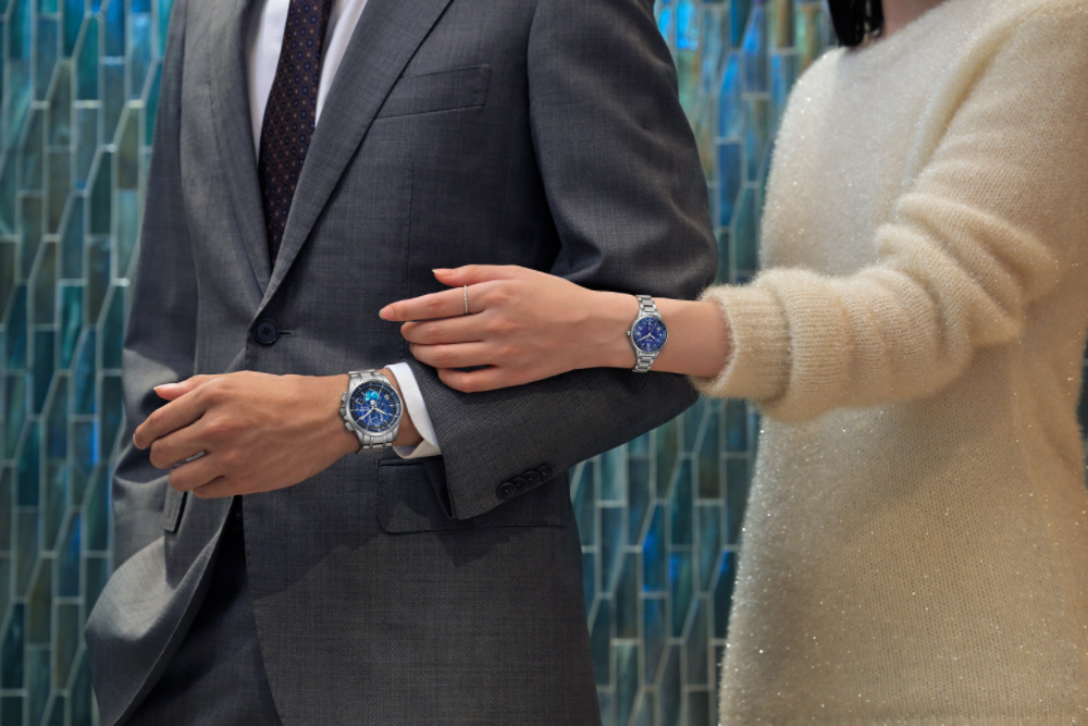对表的设计灵感源于教堂的蓝色彩绘玻璃,将《圣经·雅歌》中“求你将我放在你心上如印记,带在你臂上如戳记”的爱情誓言凝于腕间。在古老的传承中,蓝色象征着天堂、神圣、希望,更是圣母玛利亚袍服的颜色,代表着纯洁与忠诚。而古代的神圣染料Tekhelet,也被称为“圣经蓝”,更是象征着神圣与永恒。西铁城以“圣经蓝”为Dear Collection真爱系列对表的主色调,让时计不仅是一件配饰,更成为承载神圣誓约的爱情信物。