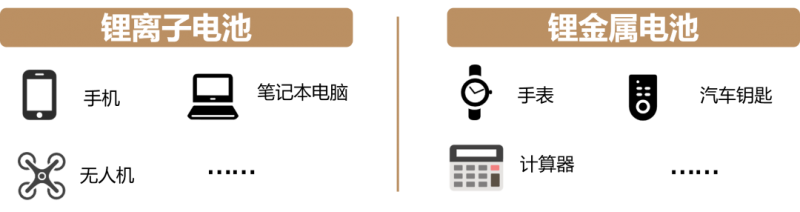 锂金属电池:一次性使用,以金属锂为负极,通过锂的氧化还原反应产生电流,能量密度极高。常见于手表、计算器、汽车钥匙等产品。