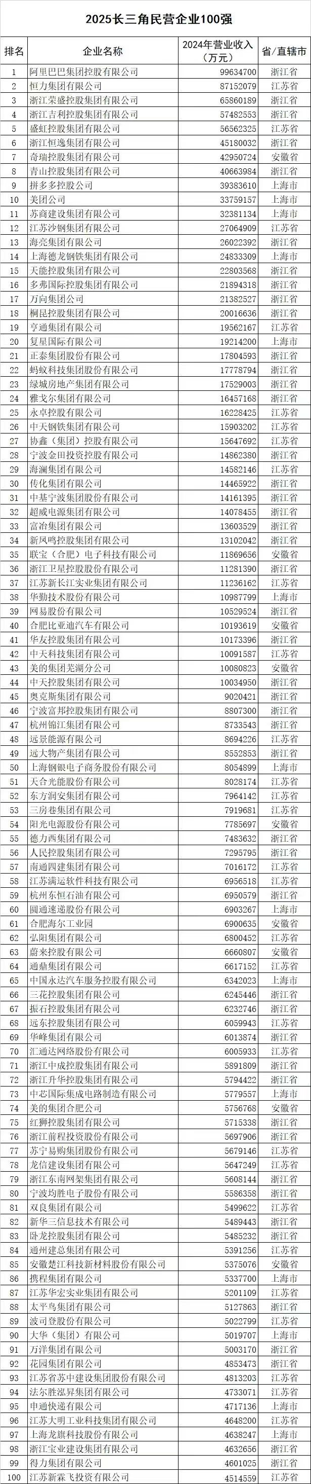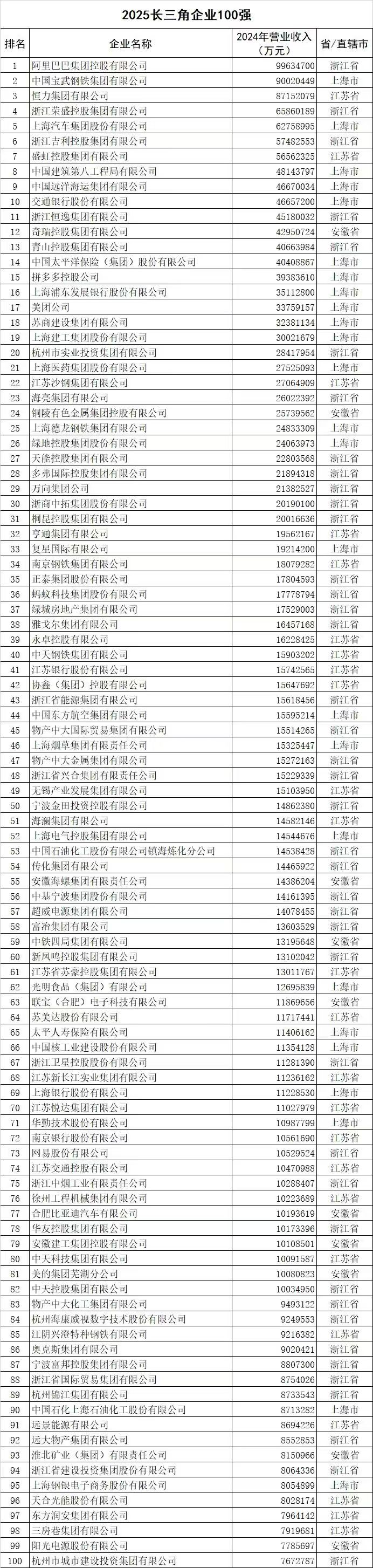 新华日报财经讯 日前,2025长三角百强企业新闻发布会在上海中国金融信息中心召开。会上,上海、江苏、浙江、安徽三省一市企业联合会、企业家协会携手,共同发布了涵盖2025长三角企业100强、制造业企业100强、服务业企业100强、民营企业100强、民营制造业企业100强和民营服务业企业100强这6个极具影响力的排行榜,同时还发布了《2025长三角百强企业发展报告》和《2025长三角民营百强企业发展报告》,为长三角地区的企业发展态势勾勒出清晰的轮廓。
