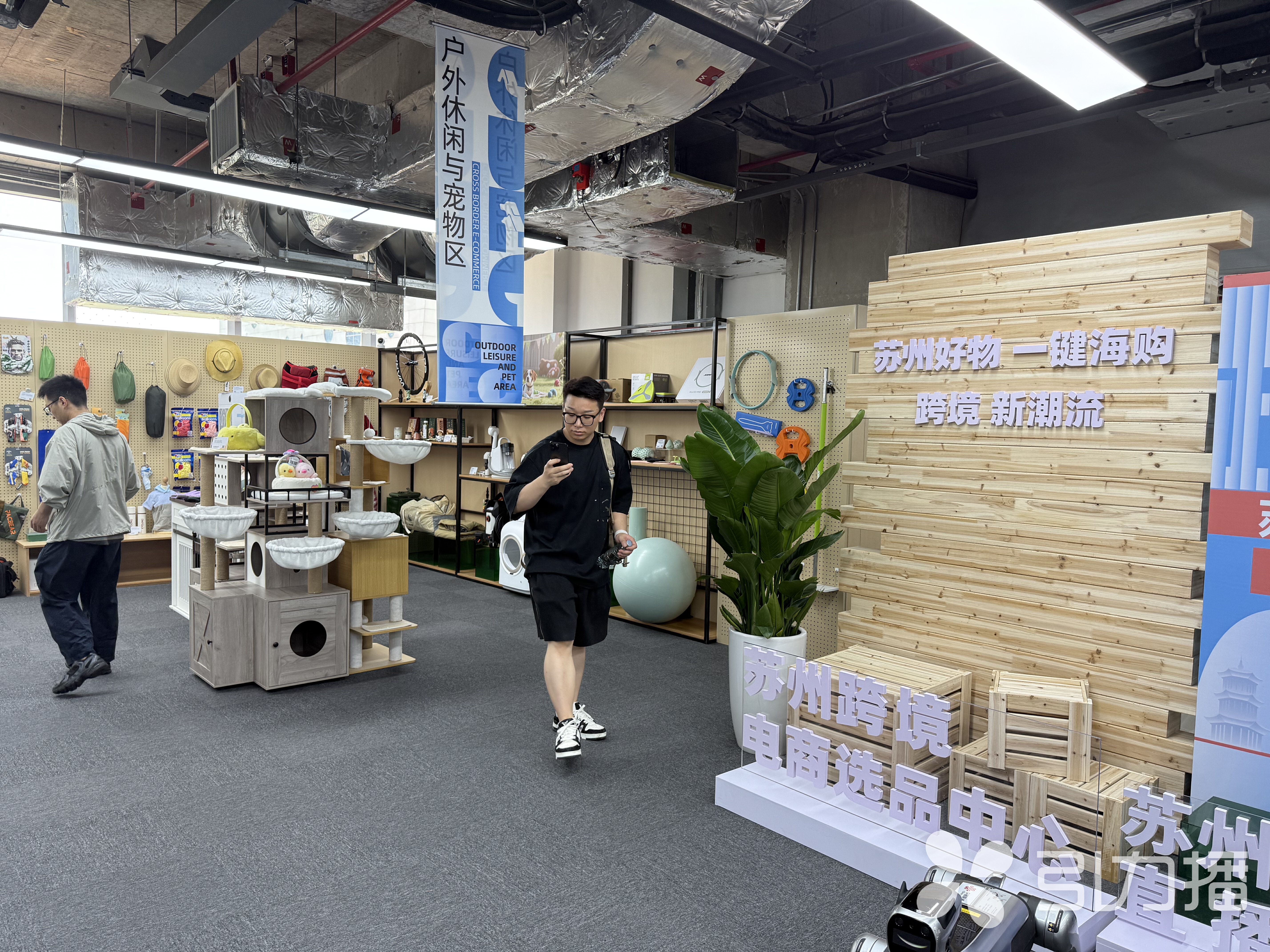 在苏州南岸新地的一间展厅里,来自全市各地的智能家电、五金工具、丝绸家纺等产品整齐陈列,吸引不少海外平台采购商、本地卖家前来“选货”。这里是苏州市跨境电商产业发展有限公司(以下简称“跨境电商产业公司”)运营的跨境电商选品中心,也是不少“苏州制造”走向全球的“出海第一站”。