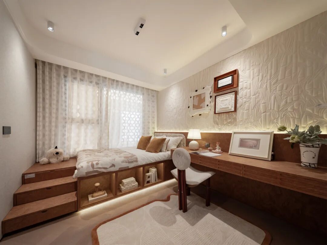 北向次卧也打破了传统鸡肋空间的局限,展现出异常宽敞的空间感,让每位家庭成员都能享受到舒展的生活。
