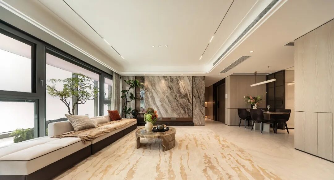樾满云川更有扎实的里子,以公开的建面约122㎡的样板间为例,这是一场空间与美学激情碰撞。