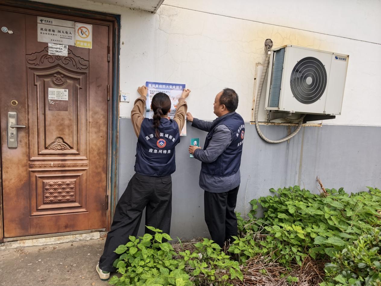 活动期间,网格员们携带《居民家庭防火安全提示》宣传海报,深入村民家中,重点普及“三清三关”(清阳台、清走道、清厨房,关门窗、关电源、关燃气)安全规范,并提醒村民及时清理楼道杂物,严禁在户内为电动自行车充电。针对老年人和独居户等重点群体,网格员还现场演示了火灾初期的正确处置方法,特别强调了电器、油类火灾不能用水扑救,以及遇到大火浓烟时应采取“关门堵缝、固守待援”的科学避险原则。
