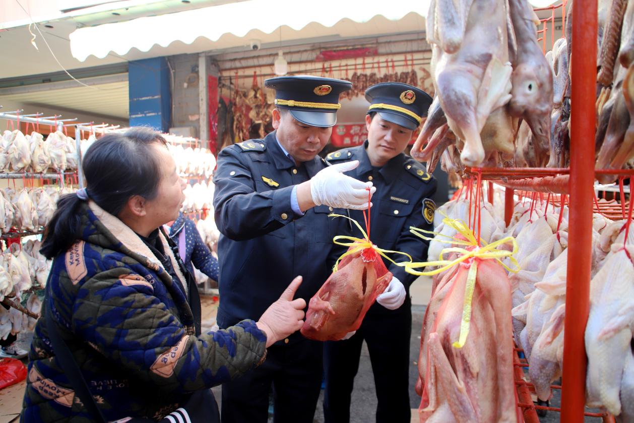 走进桠溪永兴农贸市场,咸货区已然成为最热闹的区域之一。摊位上挂满了色泽诱人的咸鹅、咸鸡、咸肉、香肠等传统年货,不少市民正在精心挑选。“今年咸货上市比往年稍早一些,我们已经增加了备货量。”经营户徐英娣表示,随着春节临近,预计销量会持续攀升,“现在顾客不仅关注价格,更关心质量安全。”针对这一季节性消费特点,高淳区市场监管局桠溪分局提早部署,完善抽检方案,对辖区内腌制咸货生产、流通环节展开全面检查。