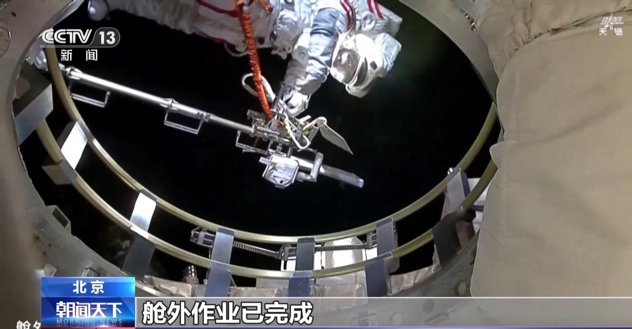 经过约8个小时出舱活动,当天18时45分,出舱航天员张陆、武飞完成全部既定任务,返回问天实验舱气闸舱。