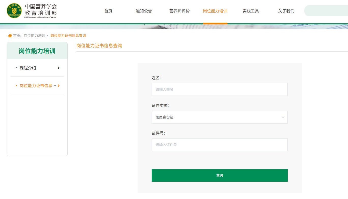无论是公共营养师,还是注册营养师、注册营养技师,通过考试之后都能获得相应的证书。在中国营养学会注册营养师官网上,就有证书查询一栏,但除了个人姓名之外,还需要输入证书编号才能查询。而在中国营养学会教育培训部官网上,有公共营养师岗位能力证书的查询入口,这里则要求输入个人姓名和身份证号才能查询。