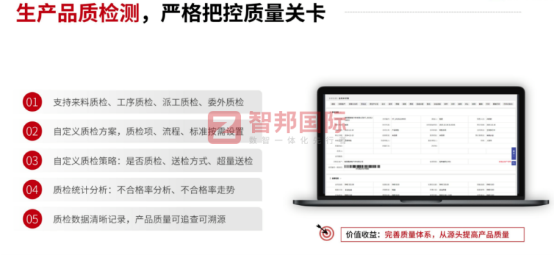 智邦国际一体化ERP的生产管理功能,以“降本增效”和“高质量发展”为核心双路径,为企业提供全方位的数字化支撑,实现管理价值与业务价值的同步提升。