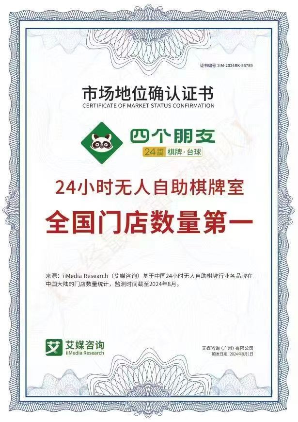 创业者因大环境而改变,大环境则塑造创业者。在“高频刚需、受众广泛”的市场定位下,“四个朋友”进一步提升了项目的投资安全性。棋牌娱乐、台球竞技等社交娱乐形式,覆盖了学生党、上班族等多个年轻群体,不受地域、季节的限制,具备持续稳定的消费需求。而品牌覆盖全国30+个省、300+个城市的加盟网络,以及超行业前10名总和的门店数量,充分证明了其商业模式的普适性与可复制性。无论是一线城市还是县域市场,都能快速适配当地消费需求,为投资者开辟广阔的市场空间。
