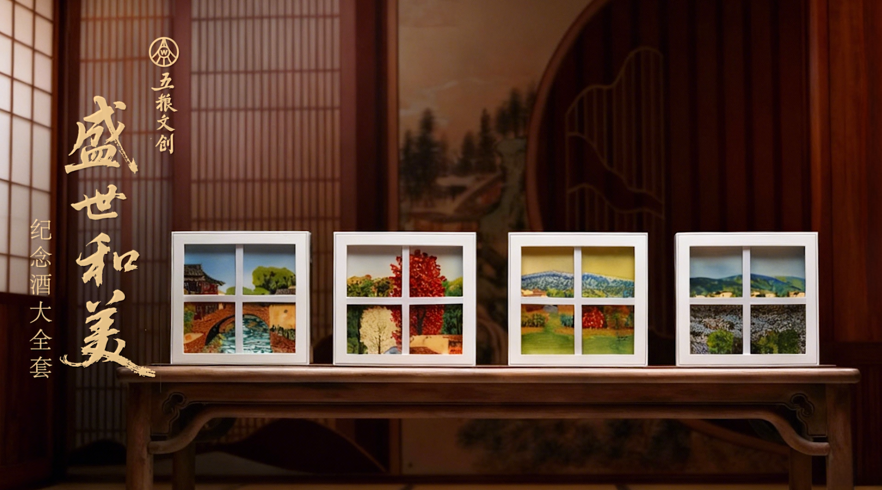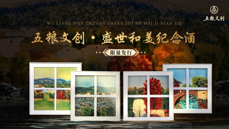 作为五粮液旗下高端文创引领品牌,五粮文创自诞生之初,便肩负以酒为媒,向世界讲好中国故事的使命。值此重大时刻,五粮文创携手景德镇陶瓷大学教授、博士生导师丁传国,倾注匠心攻克多项难题,创新打造瓷上画廊《五粮文创盛世和美纪念酒大全套》。丁传国四幅瓷画代表作《小桥流水》《淡抹烟岚》《春水映绿》《家园之春》,分别融铸为《文化圣地纪念酒》《文化礼赞纪念酒》《文化盛世纪念酒》《文化和美纪念酒》。作品凝望山水田园,抒写家园和美,器与画,酒与瓷相映生辉,瓷上画廊的风雅与五粮液传承千年的酿造底蕴巧妙相融,传递着中华文化的隽永意蕴,也寄托着对当今盛世的深深敬意。