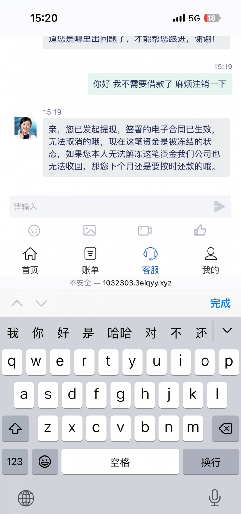引导下载第三方软件实施诈骗以解决问题为由,诱导用户下载第三方聊天软件,“专员”以银行卡冻结等理由,要求缴纳解冻资金,从而实施诈骗。
