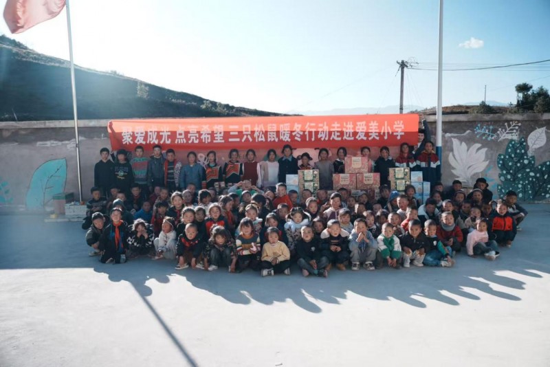 初冬的凉山,山间雾气氤氲,天气已透着寒意。11月底,恰逢彝族新年期间,三只松鼠的一支公益小队满载数十个物资箱,沿着蜿蜒的山路走进了海拔2000多米彝族村落。箱子里装的不是别的,正是一份份为山区孩子准备的“暖冬礼包”——里面有坚果零食、崭新的文具、毛巾、牙膏牙刷、益智玩具等物品,为老师和孩子们送上了暖冬物资和新年的问候。