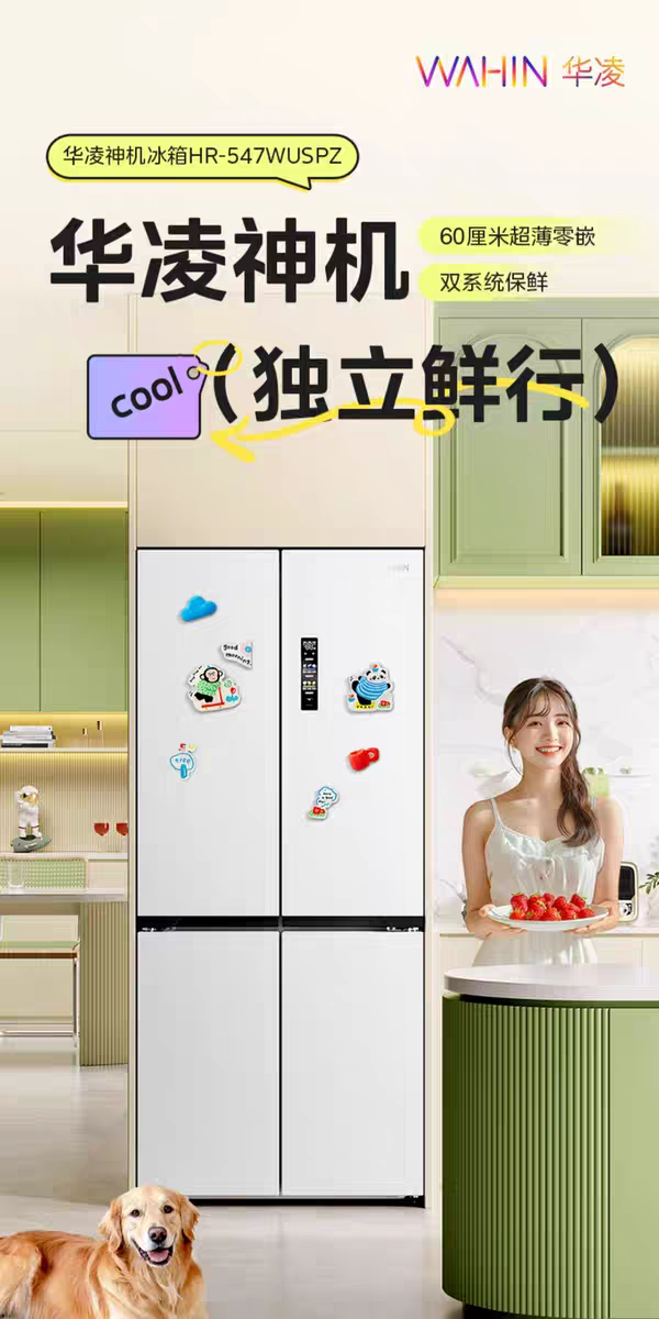 在设计上,华凌神机547冰箱以其60厘米超薄零嵌设计成为空间利用的佼佼者。整机采用底部散热系统,实现三面零嵌,无需预留散热空间,可完美融入法式奶油风、中式古典风、北欧极简风等多种家居风格。