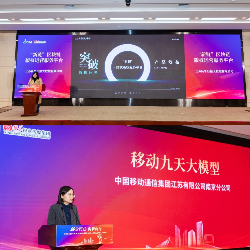在“数智”浪潮重塑产业版图的当下,建邺区率先响应国家“数据要素×”行动,把党建引领写入数字化转型顶层设计,并在大会现场重磅发布“党建引领・数智融合”场景,江苏新华日报大数据有限公司推出“新链”区块链版权运营服务平台,致力提升版权保护效能;而南京移动发布的九天大模型,则以其独特的结构化数据大模型技术,为政务服务、企业发展提供数智支持。随后,华安财产保险、南京国睿防务系统、尔特数科、科睿金信等四家企业分别以路演的形式呈现其在人工智能、低空反无雷达技术等领域的最新成果。此外,“邺企红”特邀栢拓视觉、五瑞生物、酒易淘等区内科技型企业,通过展架图文展示、实物陈列等形式,集中呈现各单位的核心成果、特色产品与技术优势。