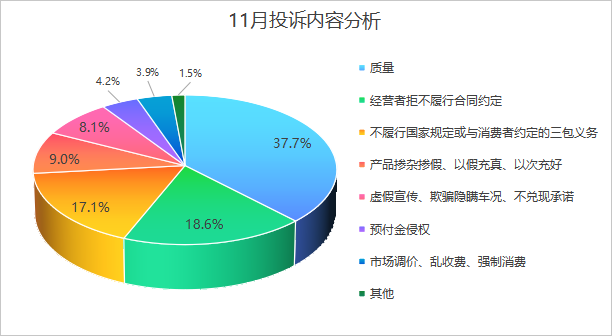 线上交易“风险持续暴露”。二手车直播售车、新车线上预订引发的投诉占比达38%,较10月提升9%,且多涉及跨区域交易,责任主体界定难;
