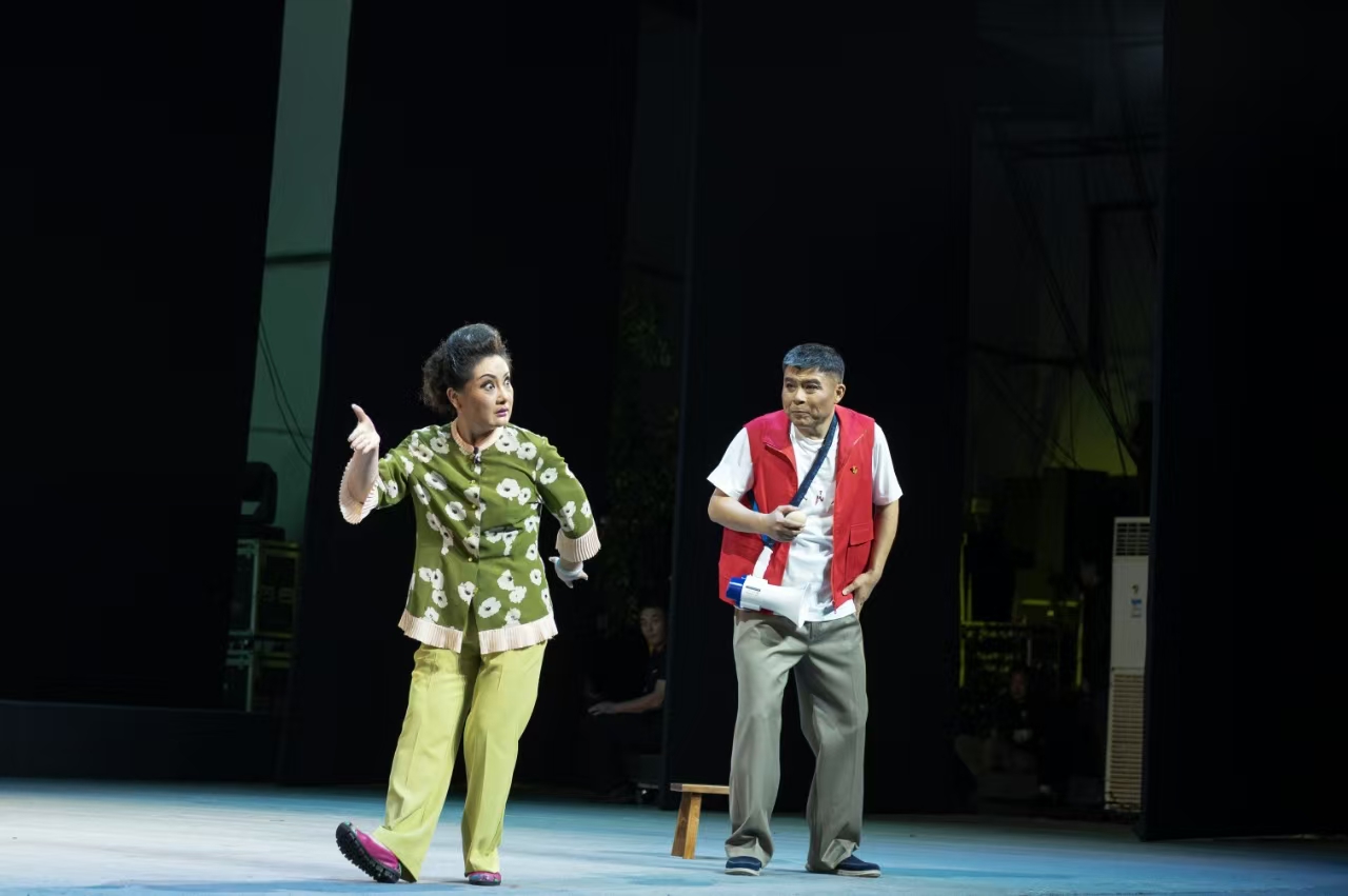 演员的表演更是入木三分。无论是主人公身上那股“拧巴”的真诚,还是周围村民淳朴中带着私心的鲜活群像,都被刻画得栩栩如生。令人尤为难忘的,是“管得宽”和“包如意”的一段对手戏:新农村住上了楼房,村规明令禁止养禽。“包如意”把母鸡偷偷藏进了屋里,“管得宽”挎着扩音器上门说理。人刚坐下,沙发底下竟飞出一只鸡蛋,令人忍俊不禁。随后二人围绕一只鸡展开“攻防”,两位演员将滚扑、搓步等戏曲程式身段,全化在这场又急又笑的“夺鸡大战”里,土得鲜活,闹得地道。戏曲的程式之美,与生活的烟火之气在此完美融合。