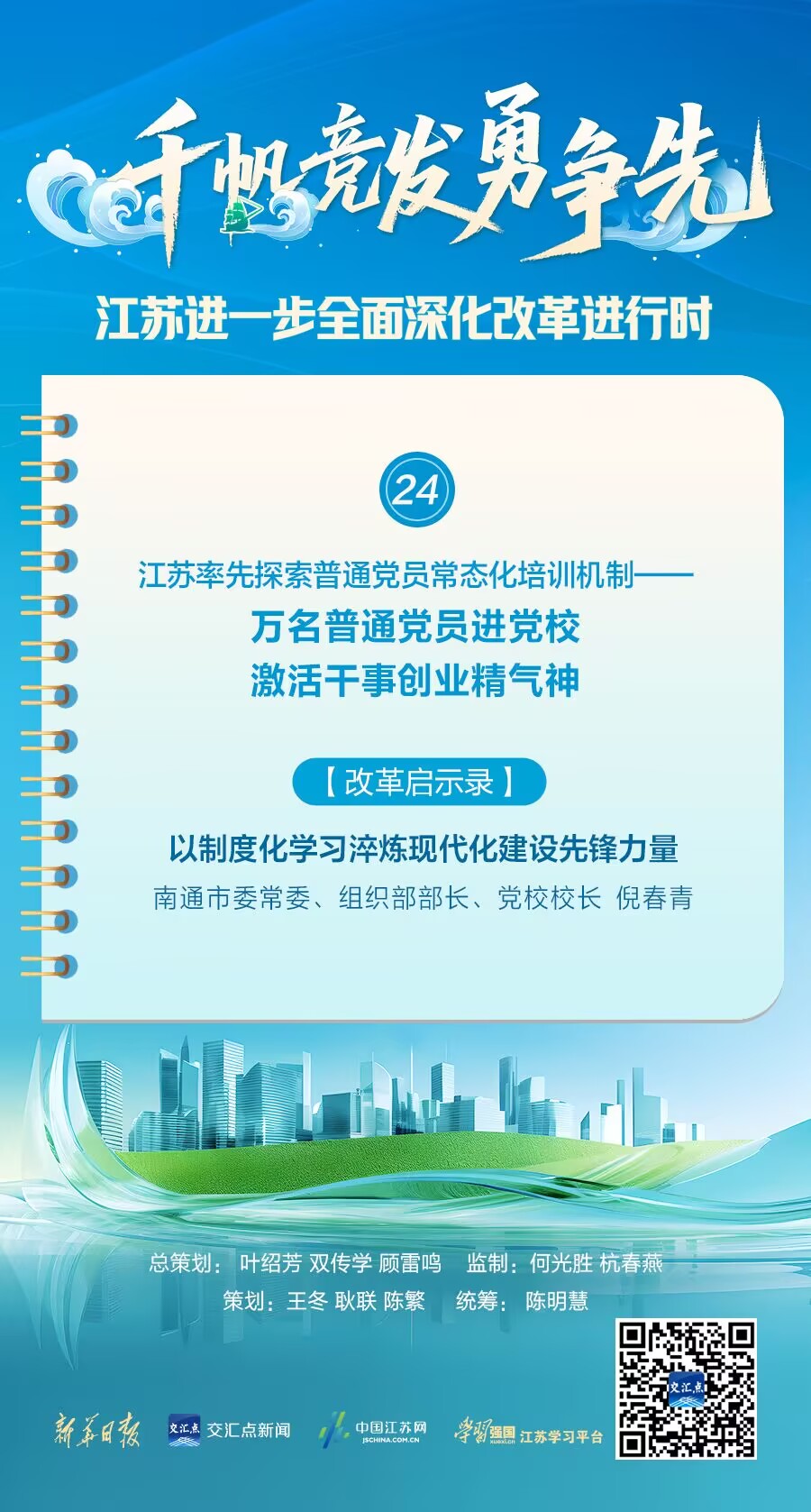 党的二十届三中全会提出300多项重要改革举措,涵盖多个领域,关乎党和国家长远发展和人民群众切身利益。近一年来,各项改革举措在江苏大地落地生根,激发澎湃动能。即日起,在省委改革办支持下,新华日报、交汇点新闻客户端推出“千帆竞发勇争先——江苏进一步全面深化改革进行时”专栏,透过一个个真实生动的案例,展现发生在江苏大地的改革故事,共同感受人民群众不断增强的获得感、幸福感、安全感。