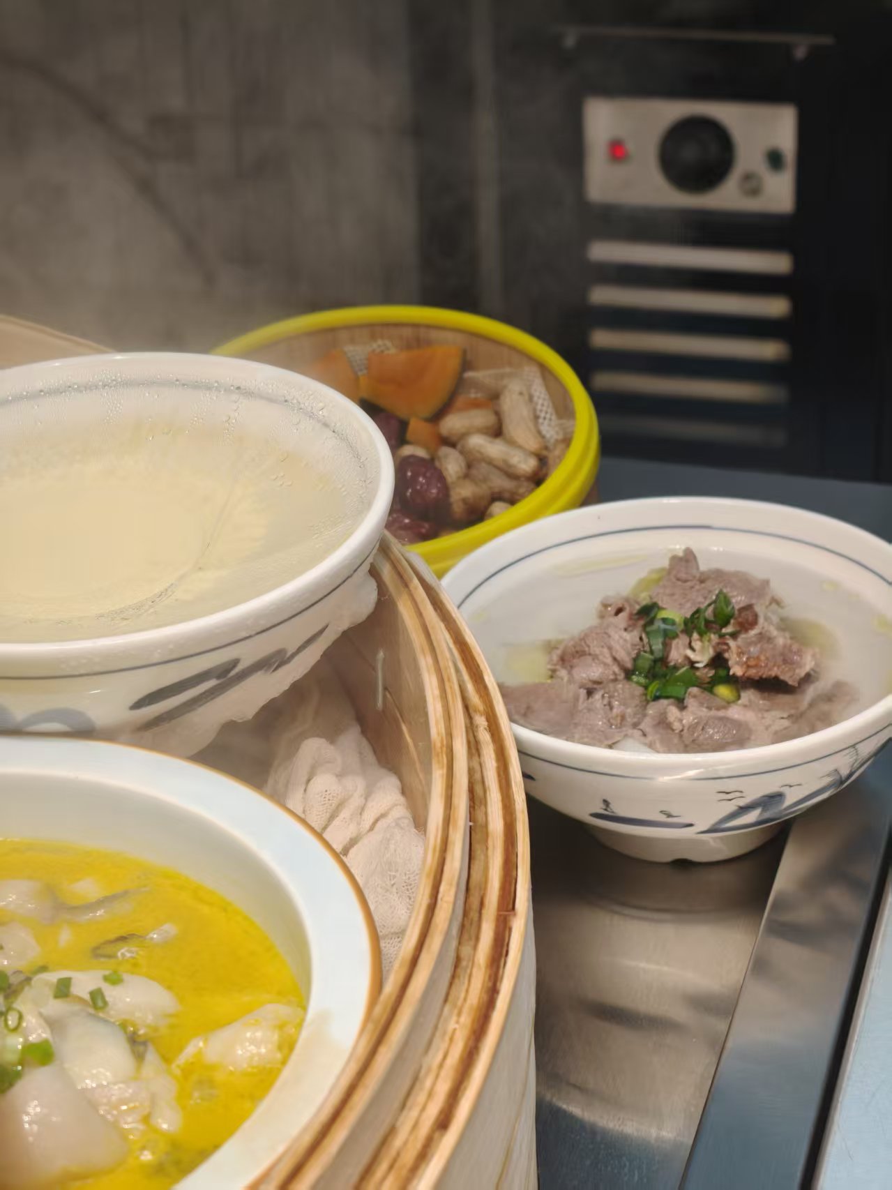 “我们盯着全龄化做文章,兼顾老中青几代人的不同需求,凸显和传统社区食堂的差异性。”采访中,“宁海拾光里”负责人郑嘉露邀请记者到食堂的取餐区域和核心后厨参观,她边走边说:“这里严格按五星级中心厨房标准建设,从源头上保障餐品的安全与品质。每日30—40余道菜品新鲜现炒,148道菜每月更新,每季度由营养师调配轮换,兼顾易咀嚼、易消化、易吸收和食药同源的饮食理念,让长者和孩童都吃得放心。”按照她的测算,若每天营收达到1万元,食堂就能初步实现盈利。尽管目前尚有差距,她仍显得信心十足:“最近我们上架了团购套餐,还计划在非用餐阶段引入手工烘焙课堂等,通过不断创新运营模式,吸引和辐射更广泛客群。”