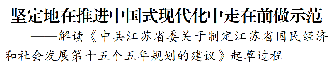 省委《建议》稿起草过程中,坚持以习近平新时代中国特色社会主义思想为指导,认真对标对表党中央决策部署,紧密结合江苏实际——