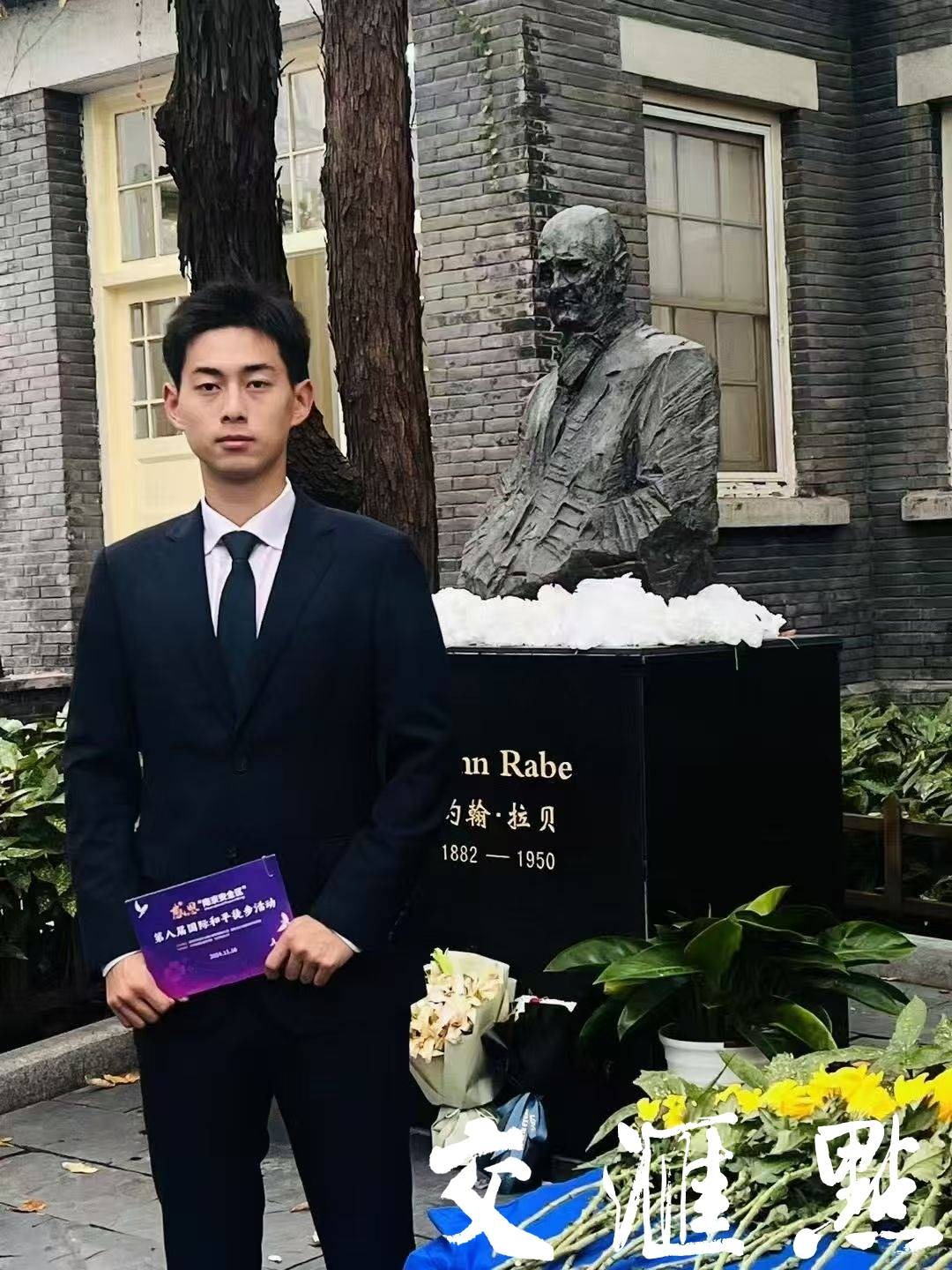 至今,他已走访了十多位幸存者及其后代,手机里存满了录音和照片,这些素材被他融入纪录片、公益宣讲和主持活动中。作为播音主持专业的学生,蒋秉錞的优势在于表达。他曾为日本小学生讲述家族故事,看着孩子们专注的眼神,他深知“历史真相的传播不分国界”;他主持家祭活动时,带领众人给“哭墙”描新,笔墨落下的瞬间,他读懂了“守护记忆”的深意。“太太说,传承不是传播仇恨,是让更多人知道和平的珍贵。”蒋秉錞说。